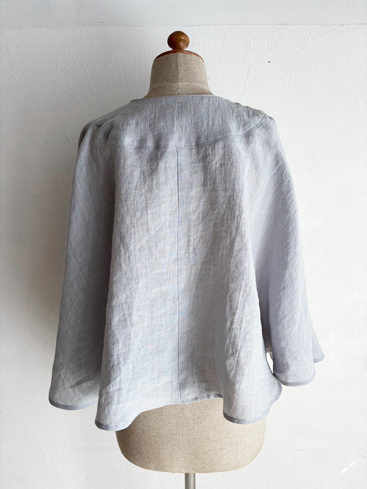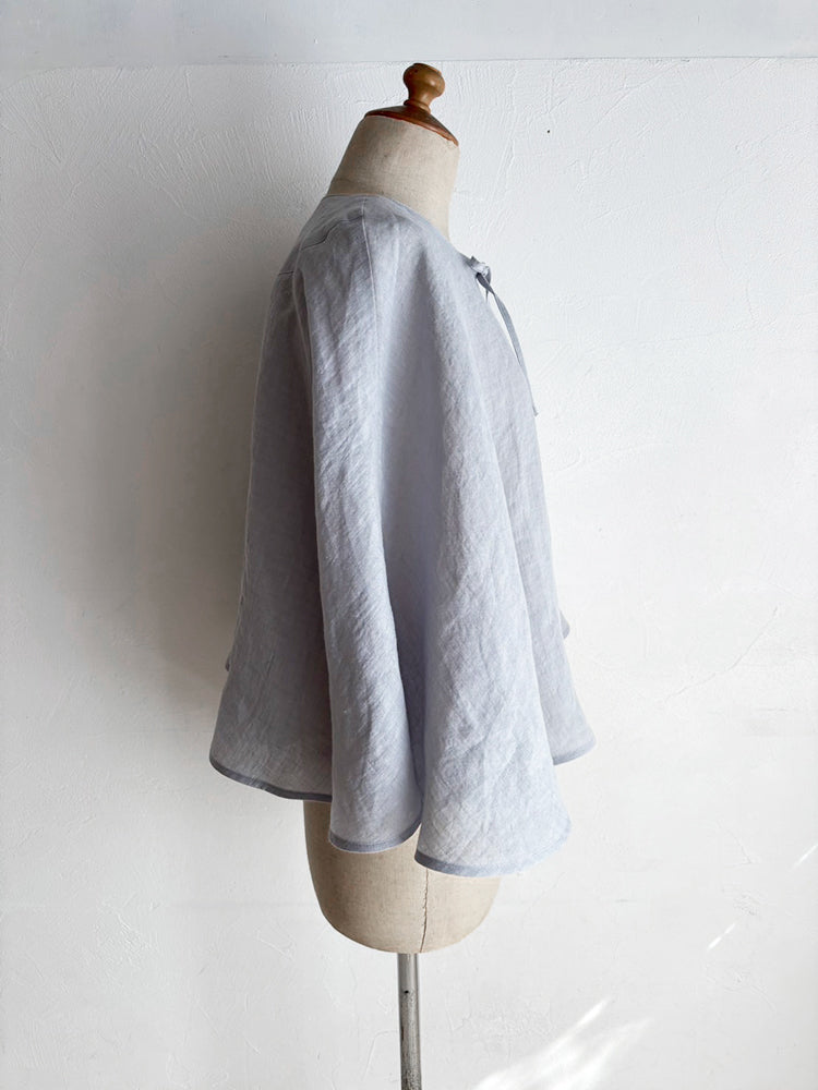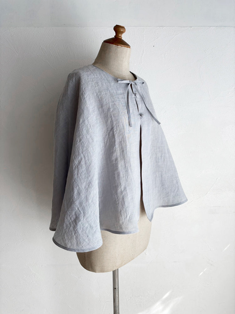 今までのケープシリーズのnew item 。柔らかなフレアを描いたシルエット、春夏のシーズンに軽やかに羽織ってコーディネートに変化を付けられます。胸元にお気に入りの小さなお花のコサージュを付けてお出かけすると、素敵な一日が過ごせそうですね。