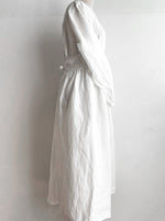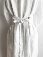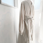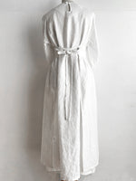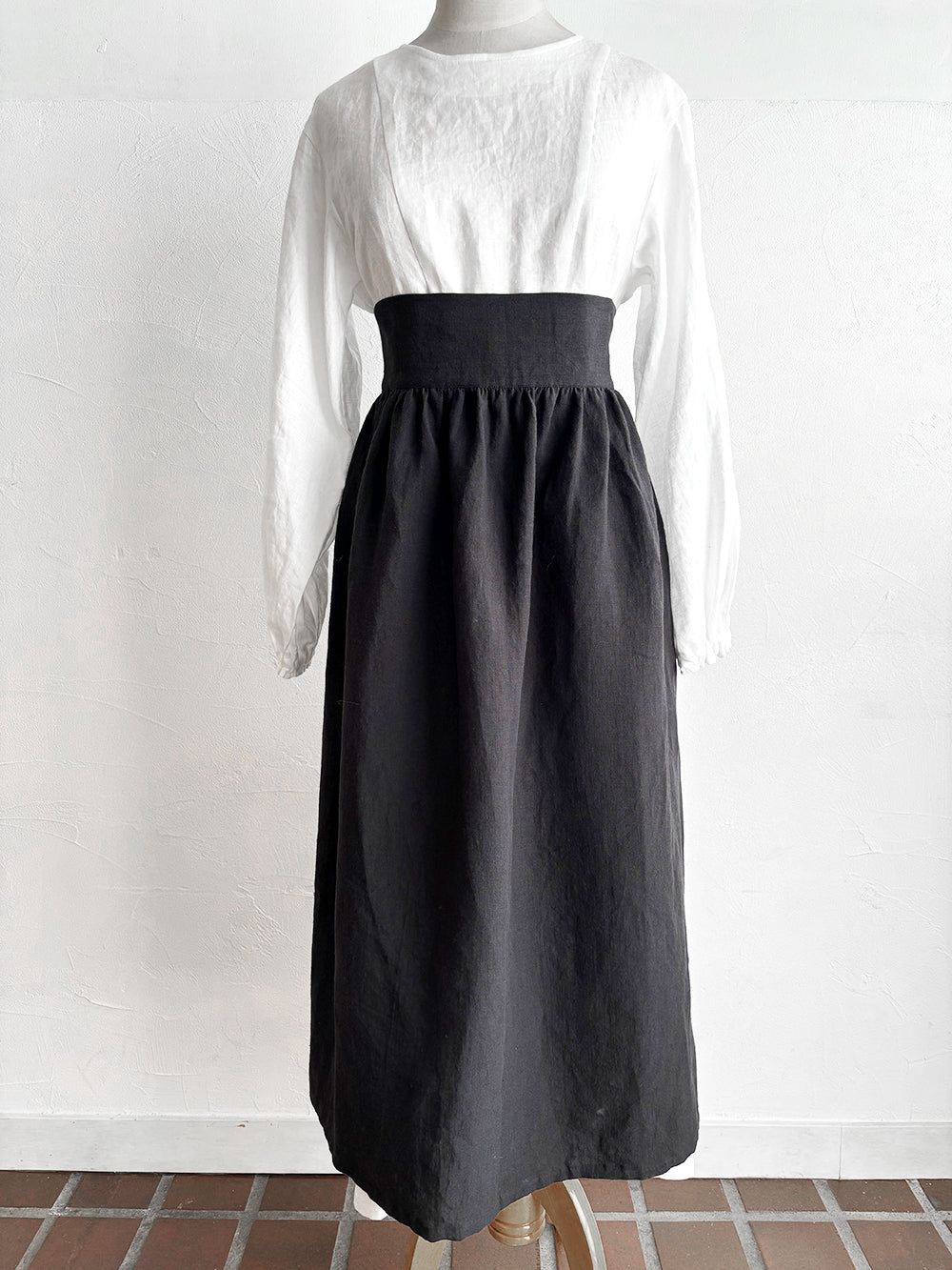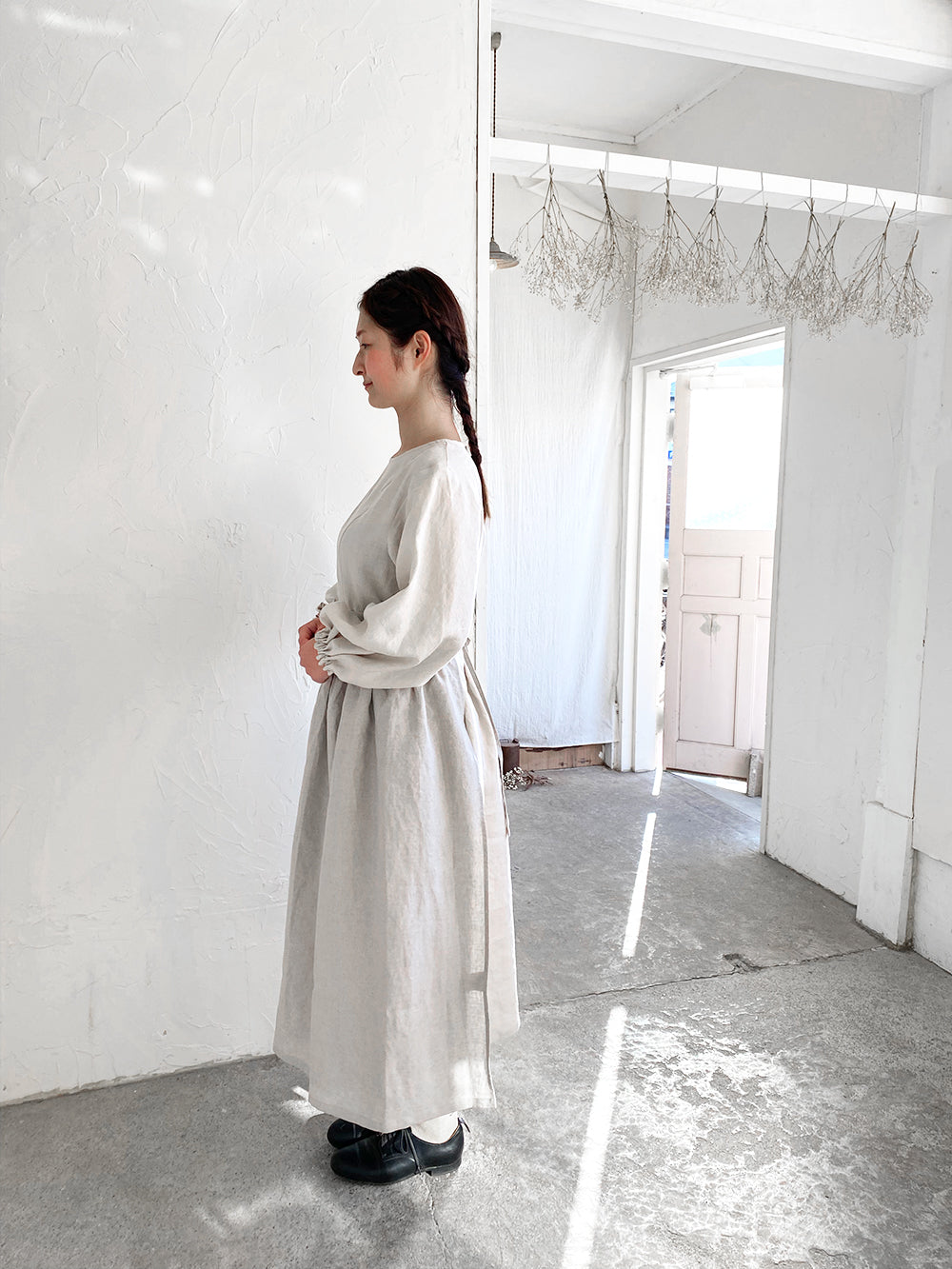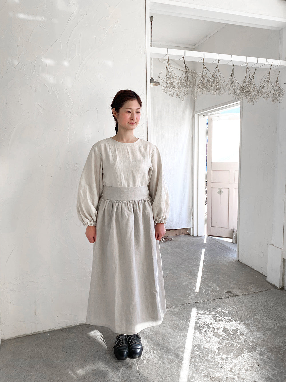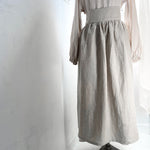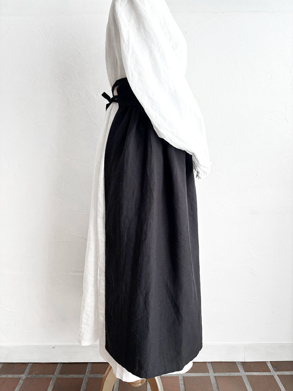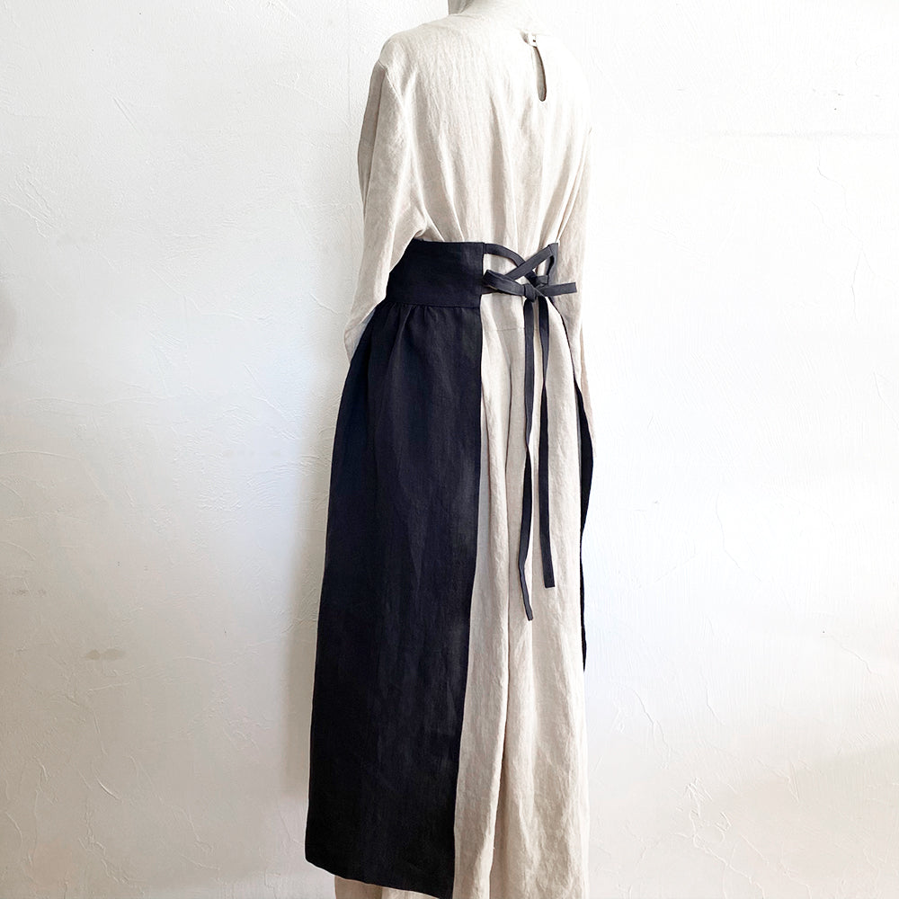 ワンピースにもう一枚重ねて纏う、乙女心をくすぐるアイテム。胸下あたりでキュッと結び、後ろの編み上げ部分が着用時に心地良い安定感がでます。いつものアイテムにプラスして気分転換もいいですし、暖かい季節には上衣がいらないコーディネートに後ろ姿のリボンがとてもアクセントになると思います。【サイズ】 free size 総丈 85cm 横幅 59cm 身幅 34cm 【素材】 リネン100% 洗濯可