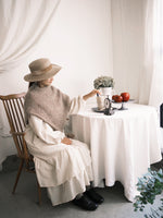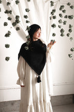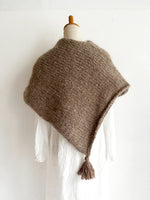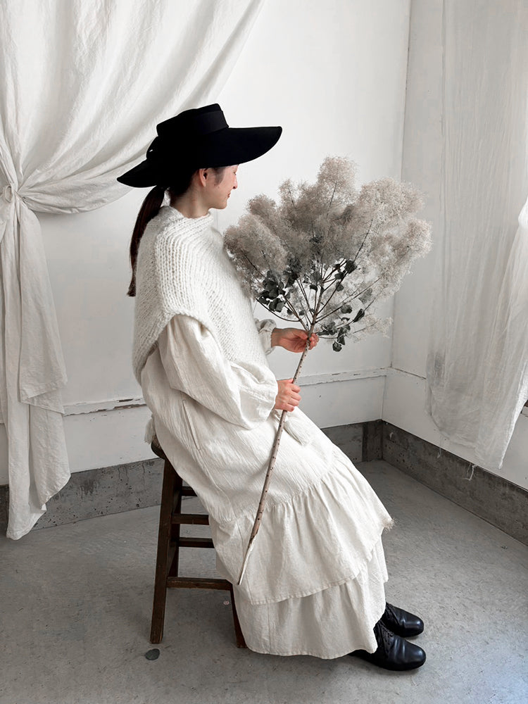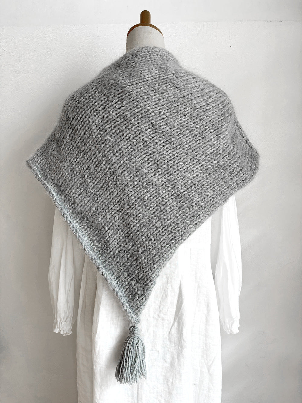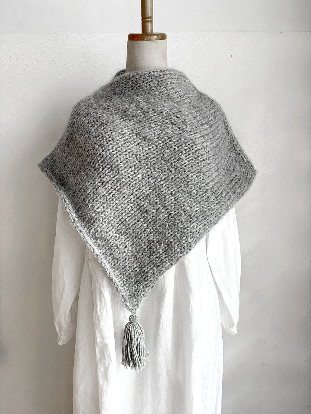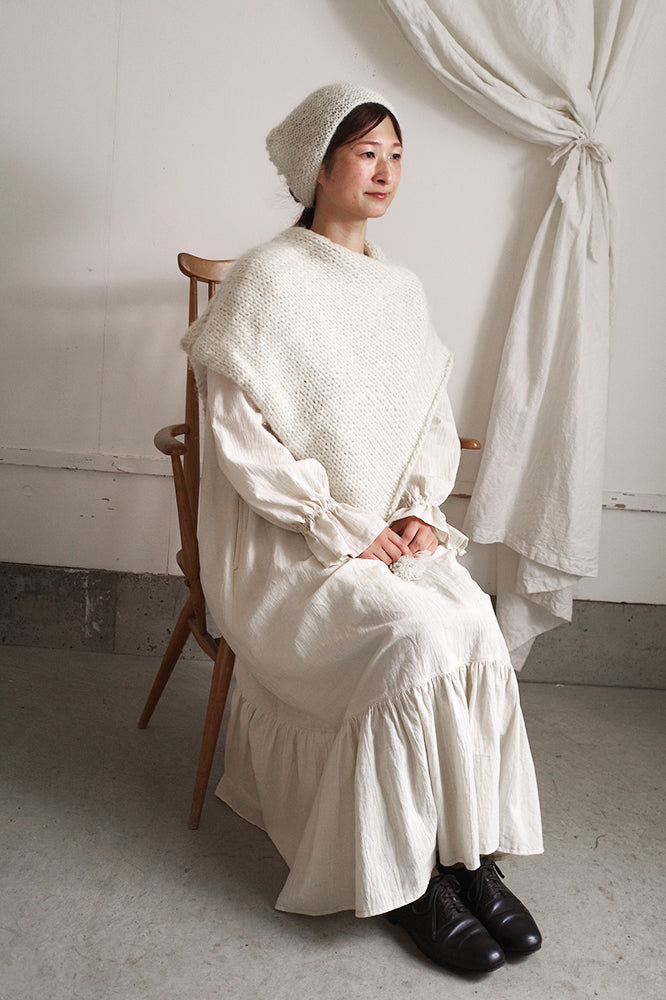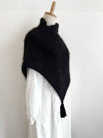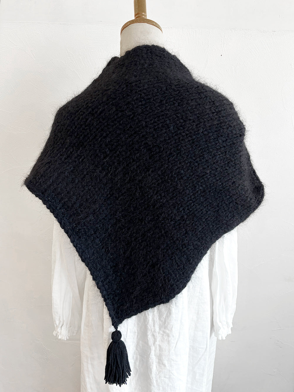 ニットポンチョ 上質な素材を用いで丁寧に編み込まれたニットポンチョです。暖かさはもちろん優しい風合いが体を包んでくれてとても居心地が良い一着です。三角形のフォルムと優しい印象、そして先っぽの大きなタッセルがとっても可愛い、冬には一枚持っていたくなるポンチョ。寒さをかわいくあたたかく乗りきる相棒になってくれます。ワンピースやコートの上からふわっと被ってお出かけを楽しんでくださいね。