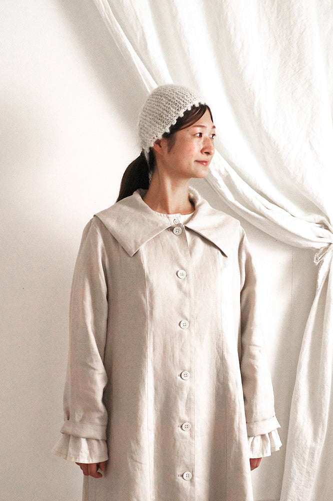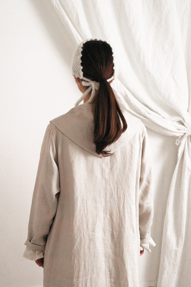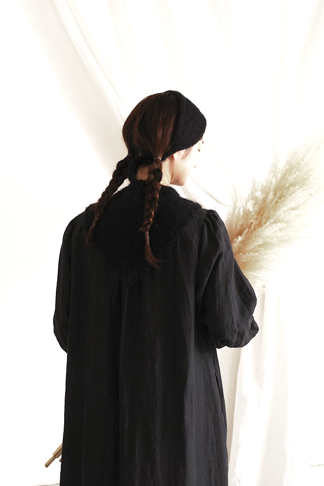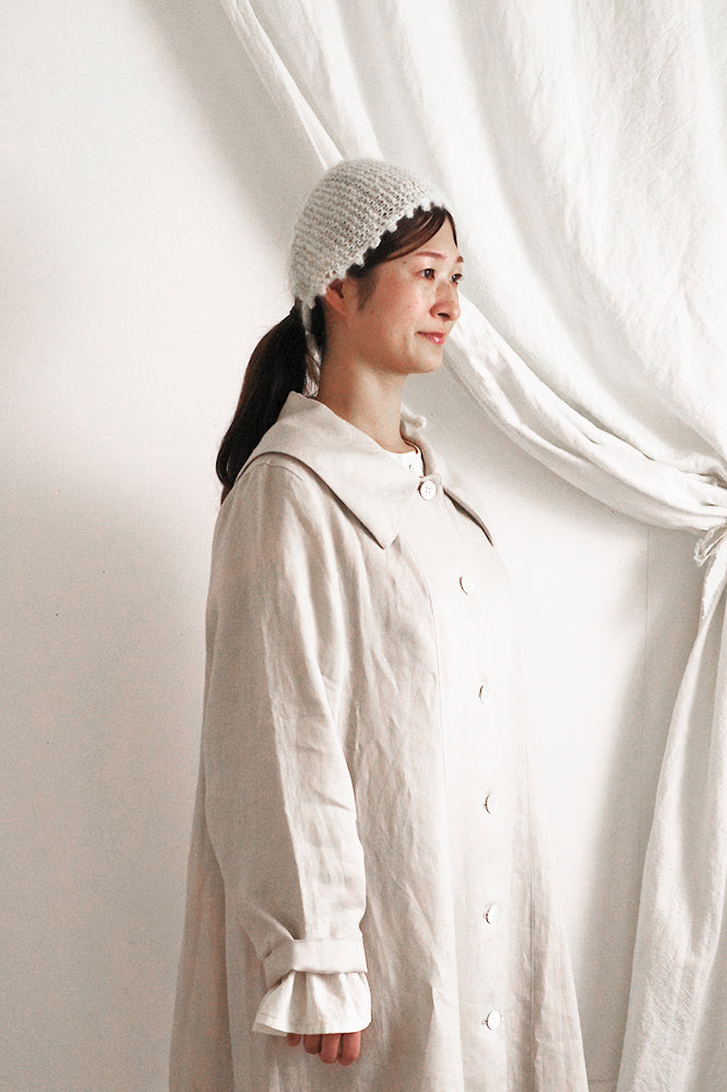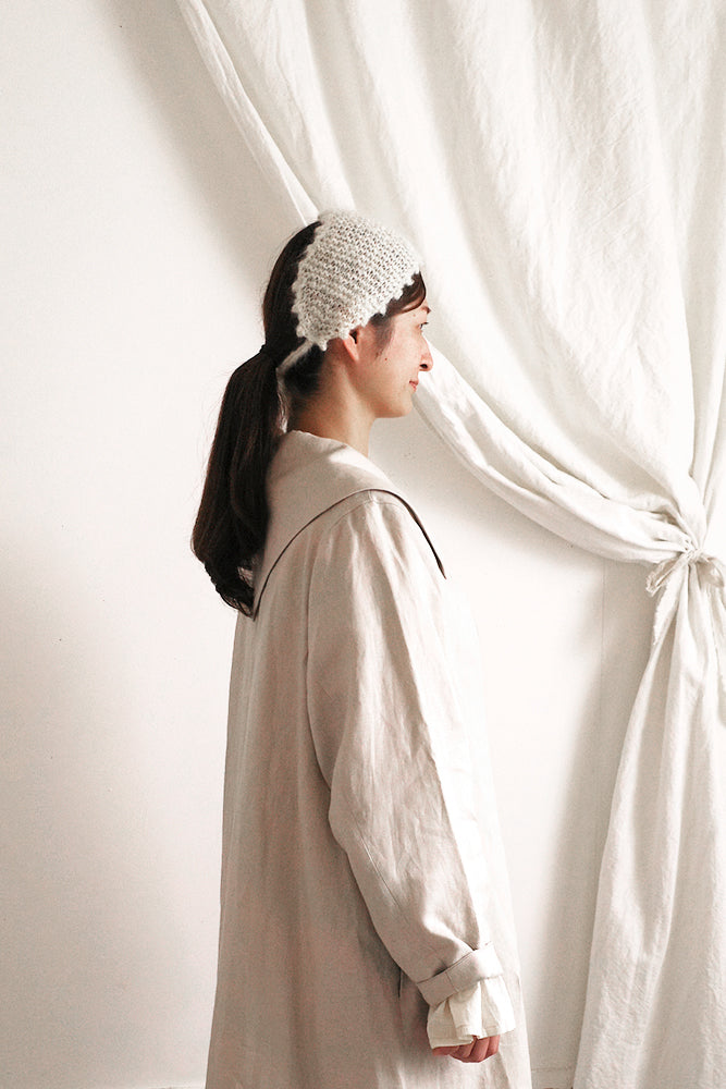 手編みのボネ。柔らかい素材のモヘヤであたまと耳を冷たい風から守ってくれます。ヘアースタイルも問わずお召しいただけますし、室内でも付けていたくなるかわいさ。ちょうどいいスタイルです。モヘヤならではの雰囲気でまとまるのが嬉しいポイント。耳もすっぽり隠れて温かいです。【サイズ】free 【素材】ウールモヘヤ