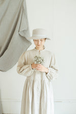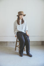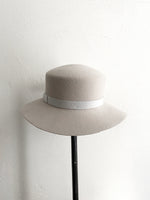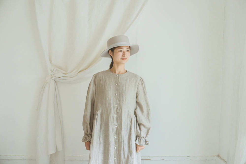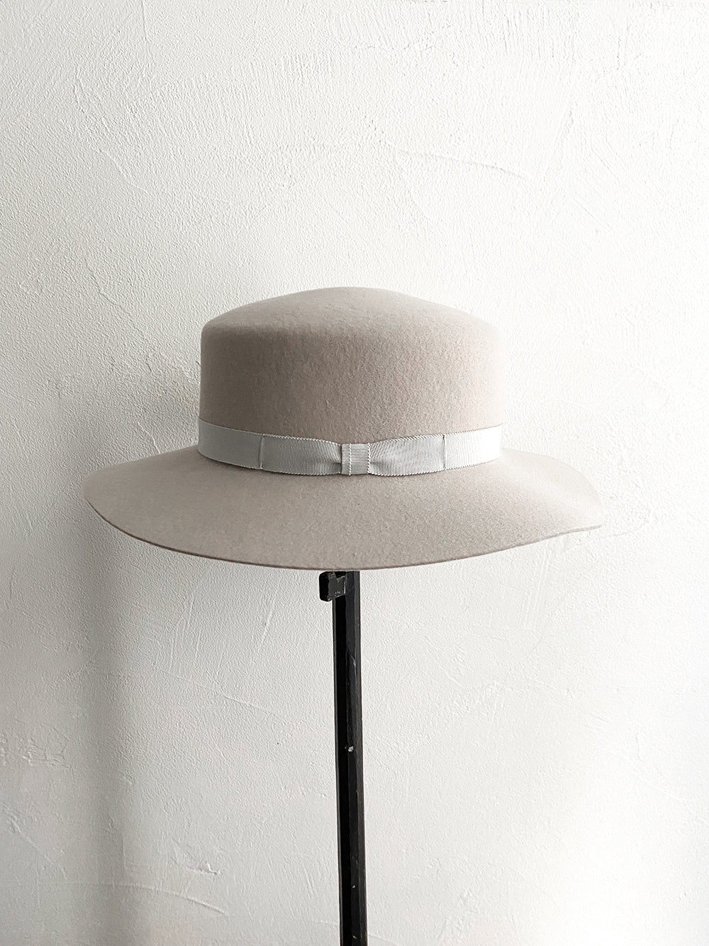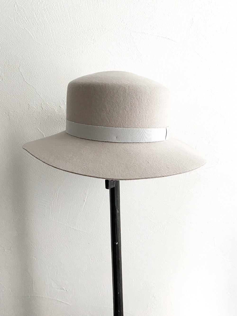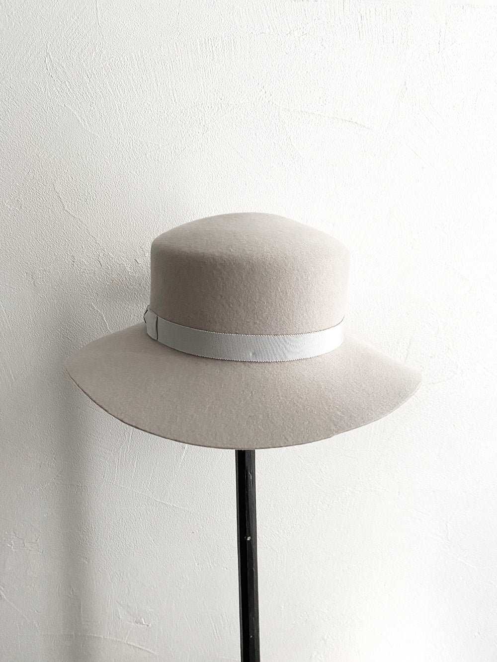 やさしいフォルムで女性らしい丸みがかったトップと下がり気味のブリムがさわやかにかわいい帽子。ウールの素材が優しい雰囲気を引き立ててくれます。付属の黒ゴムを後頭部に回して止めると帽子が安定し風に飛ばされにくくなります。【サイズ】 頭囲 55cm〜58cm 8cm 帽子の高さ つばの広さ 7cm 【素材】 ウール
