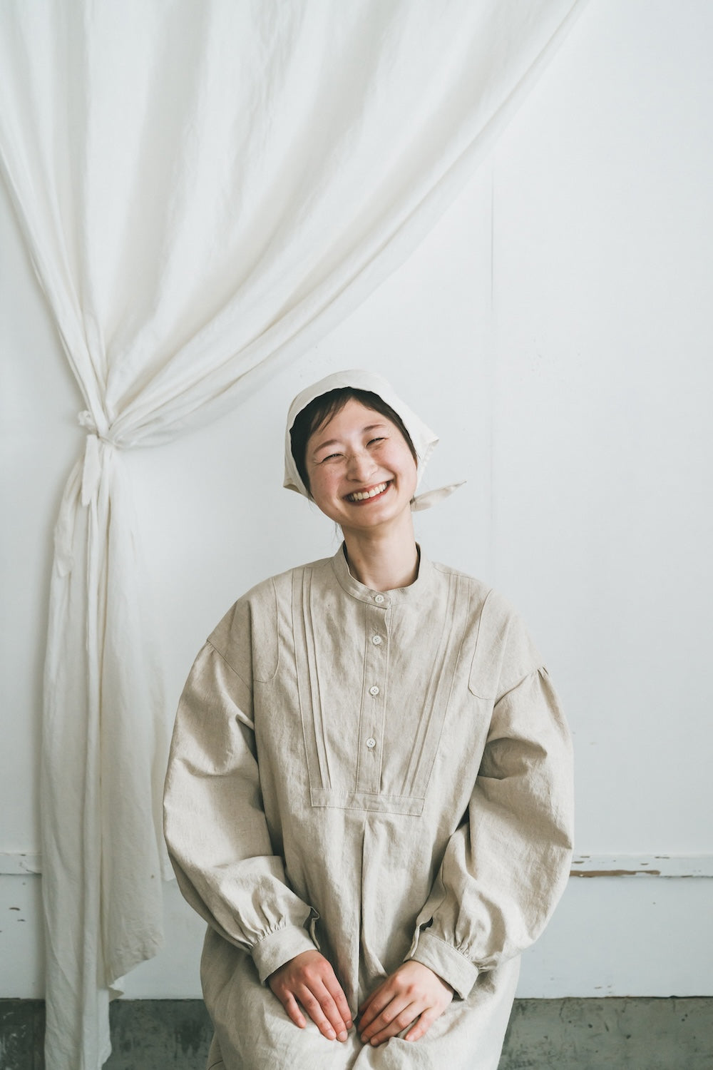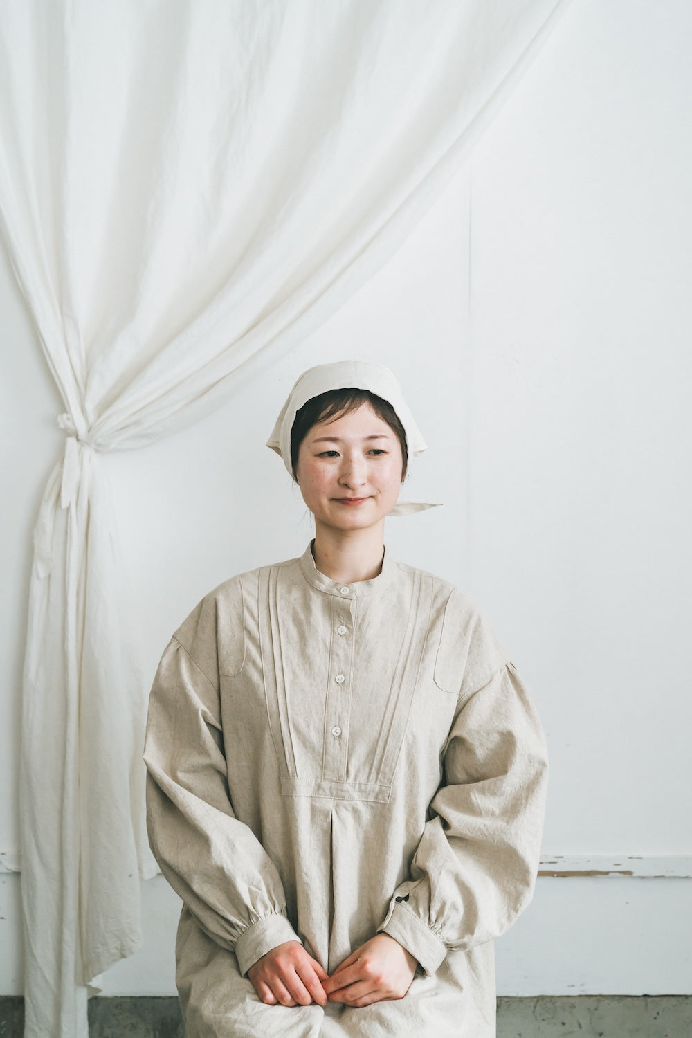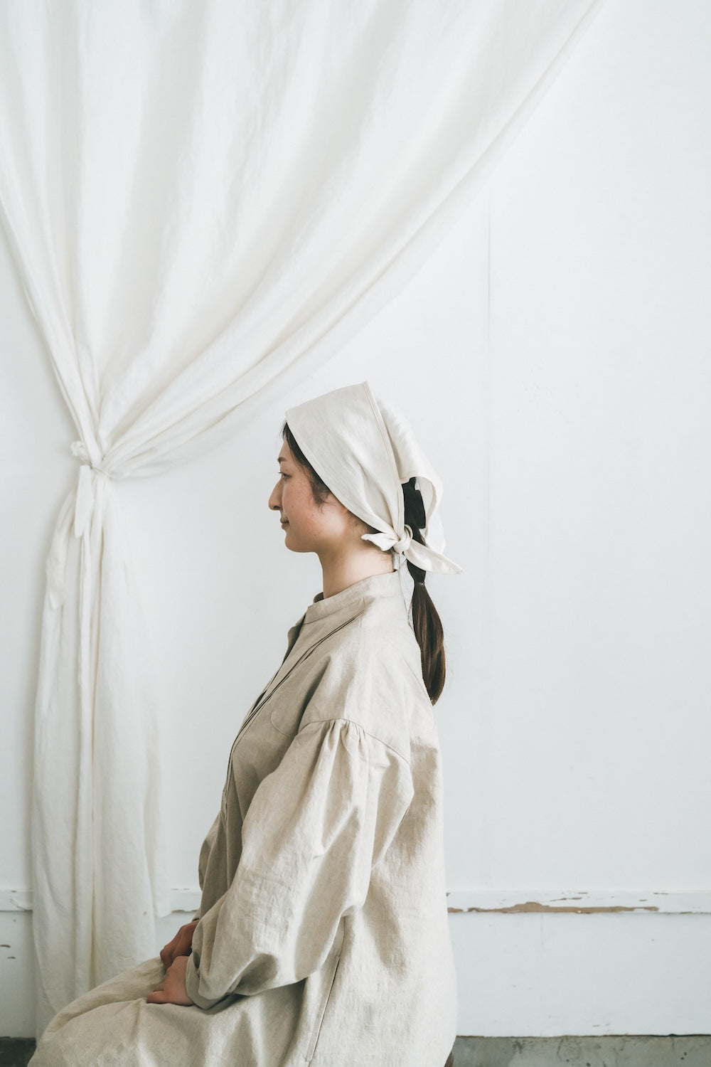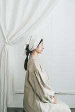 柔らかな綿麻素材で仕立てたバブーシュカです。