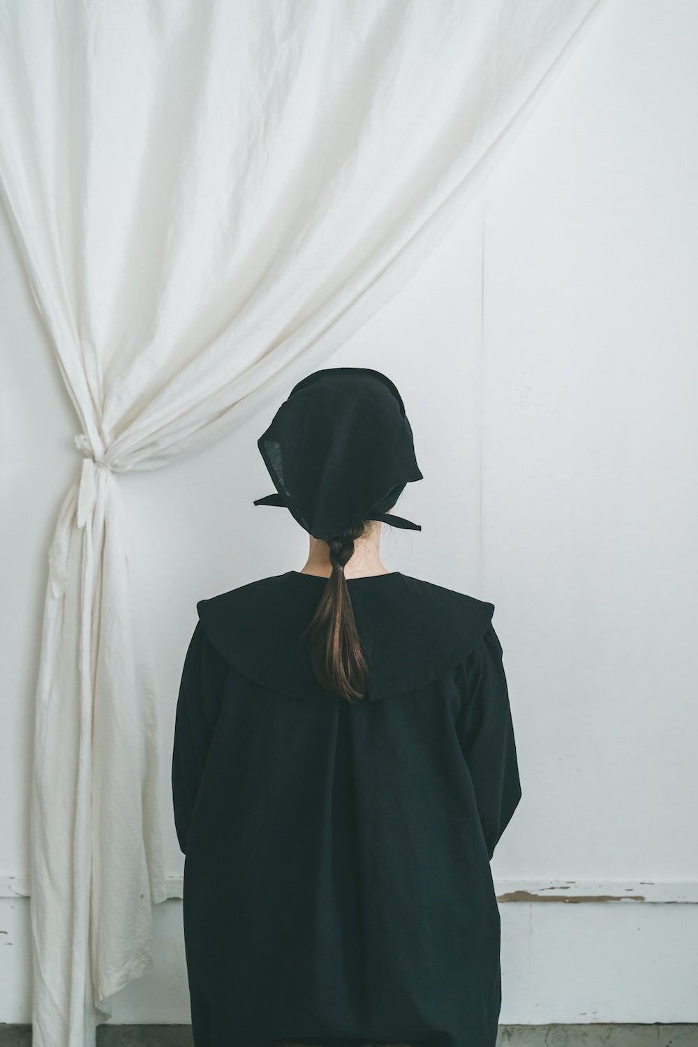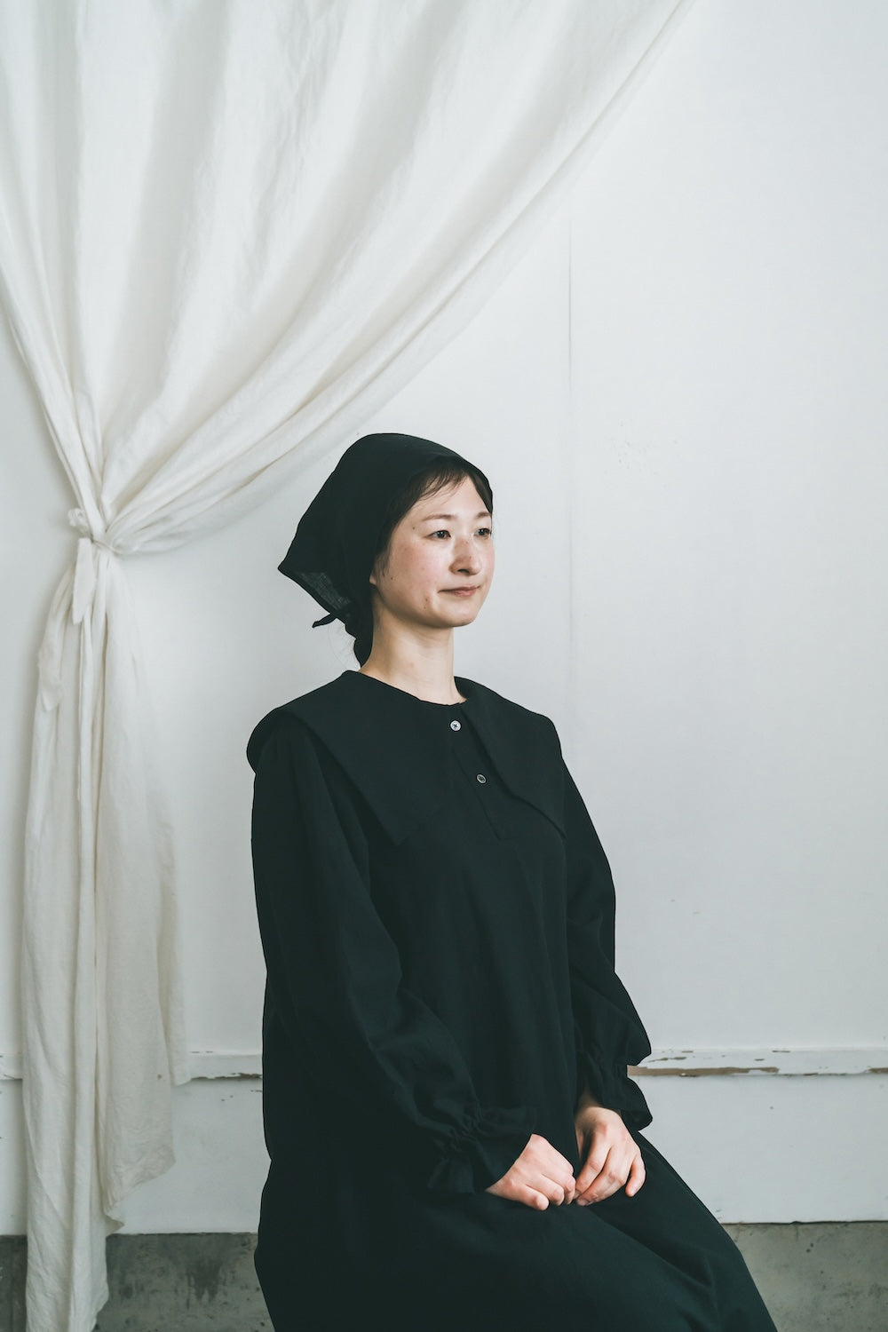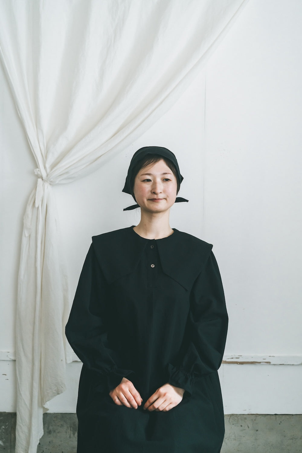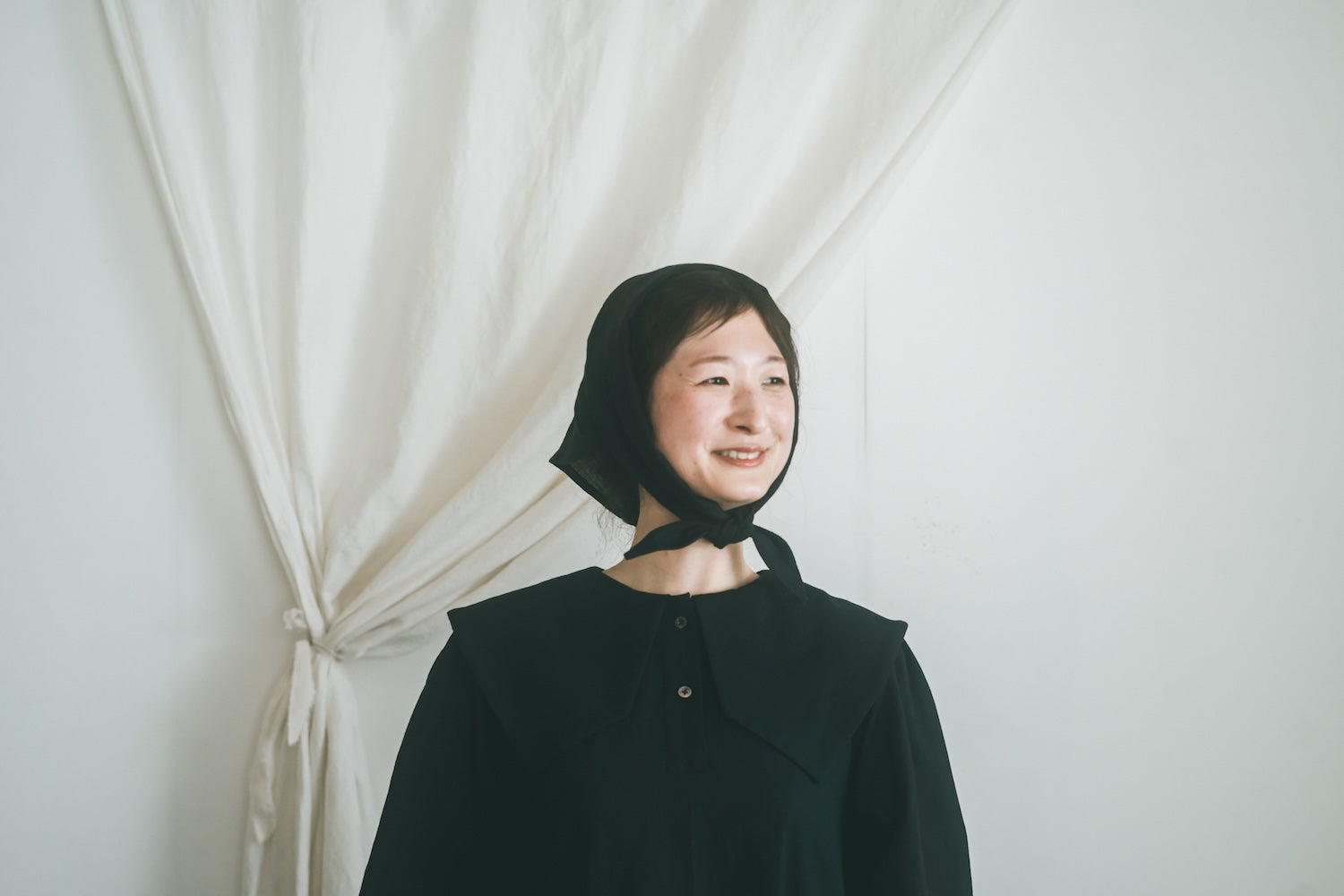 柔らかな綿麻素材で仕立てたバブーシュカです。