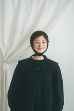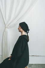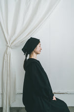 ターバンとバブーシュカが組み合わさった様なデザインは、優しく頭を包み着用も簡単。