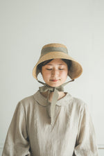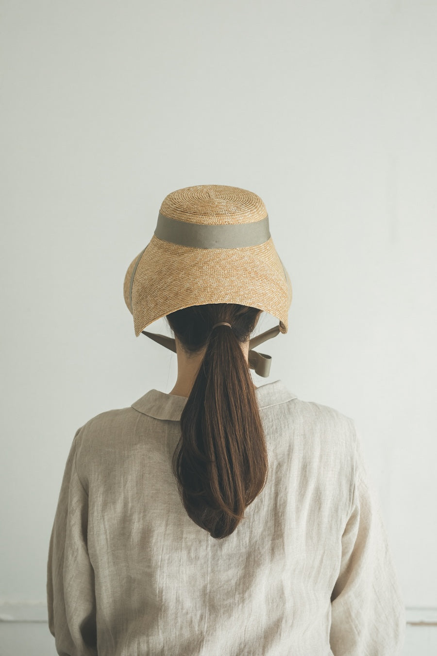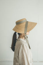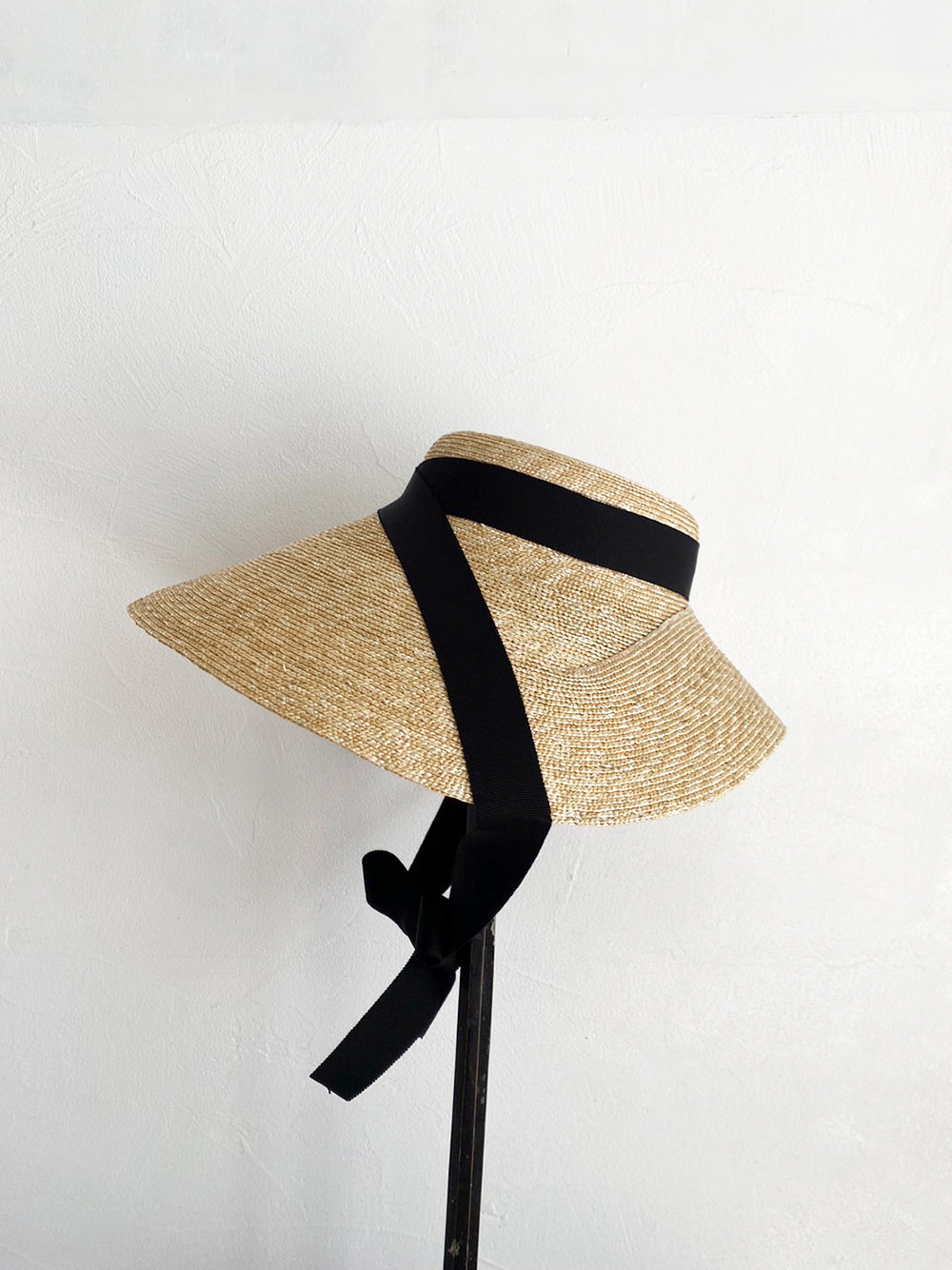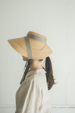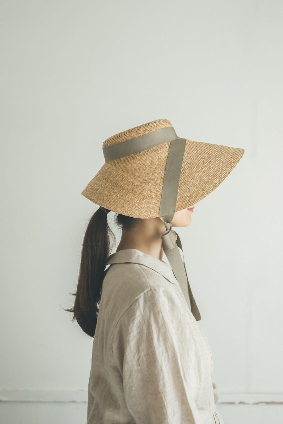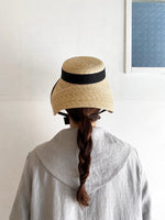 ヨーロッパの古い映画に出てくるようなボンネット型の帽子。人気のJaneやHannahのデザインをよりつば広に仕立てました。高級感がありエレガントな雰囲気に。細い麦ブレードの素材感がよりアンティークの雰囲気を醸し出しています。リボンは後ろで結んだり横で結んだりとアレンジを楽しんでみてください。付属の黒ゴムを後頭部に回して止めると帽子が安定し風に飛ばされにくくなります。【サイズ】 free 【素材】 麦