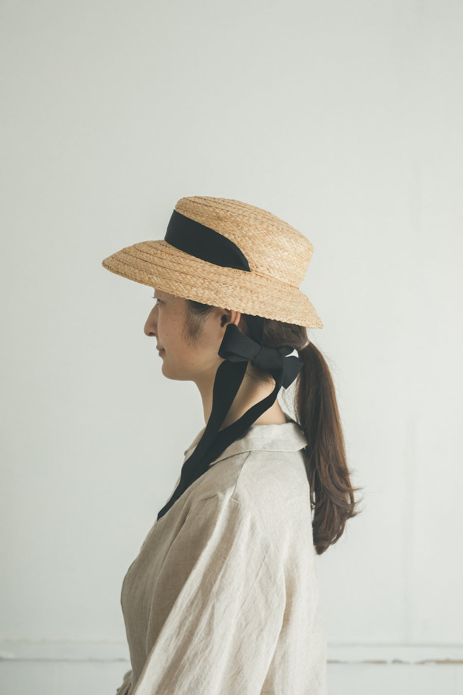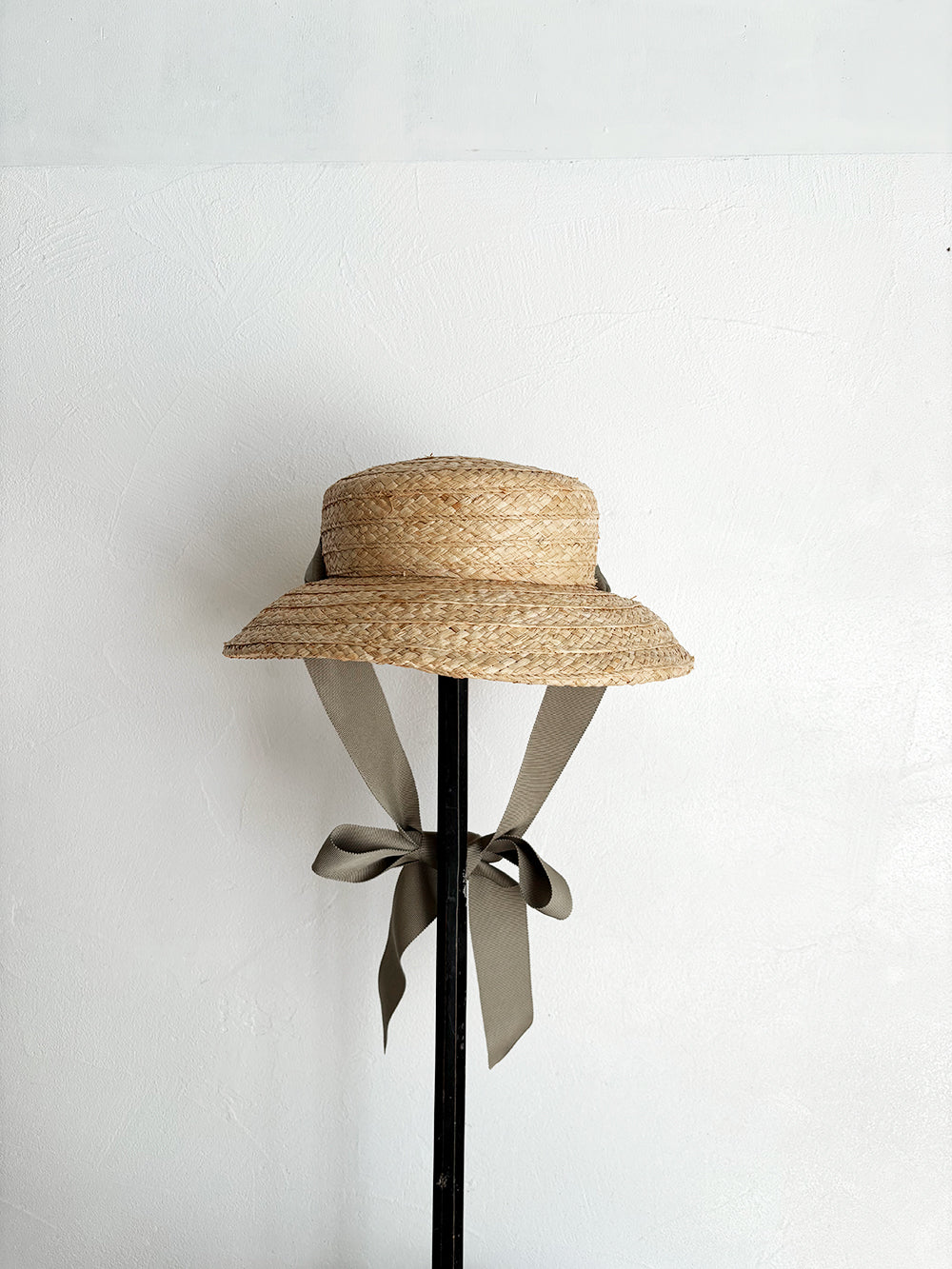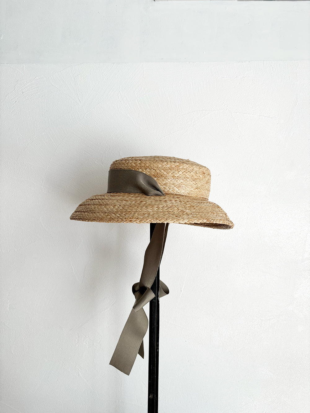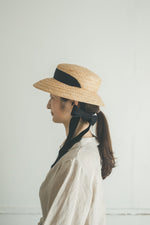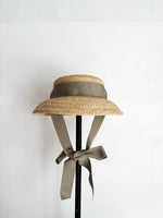 特別感のあるフォルム、垂れ下がった可愛いリボン、存在感のある印象の帽子です。頭に乗せるようにかぶるのでストレスなく長時間被っていただけます。日常的にもお出かけにも、いろいろなシーンで可愛い雰囲気に。柔らかいラフィア素材なので優しい印象に。リボンは後ろや前で結んだり、垂らしたりとアレンジを楽しんでみてください。付属の黒ゴムを後頭部に回して止めると帽子が安定し風に飛ばされにくくなります。リボンの色がグリーンベージュです。【サイズ】 free 【素材】 ラフィア