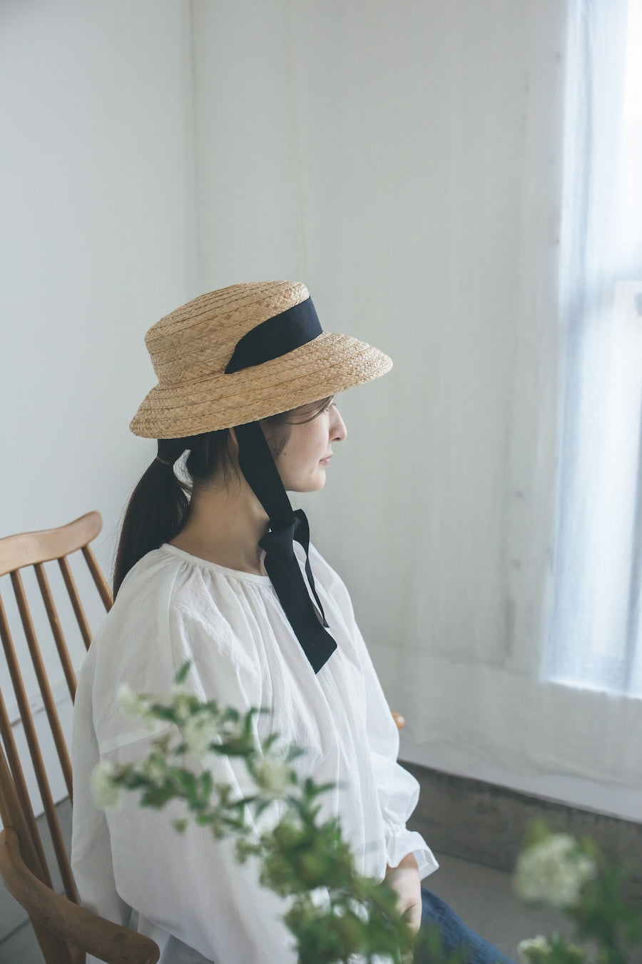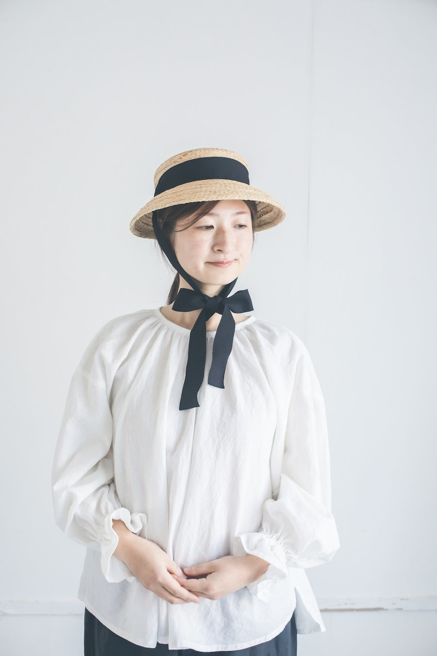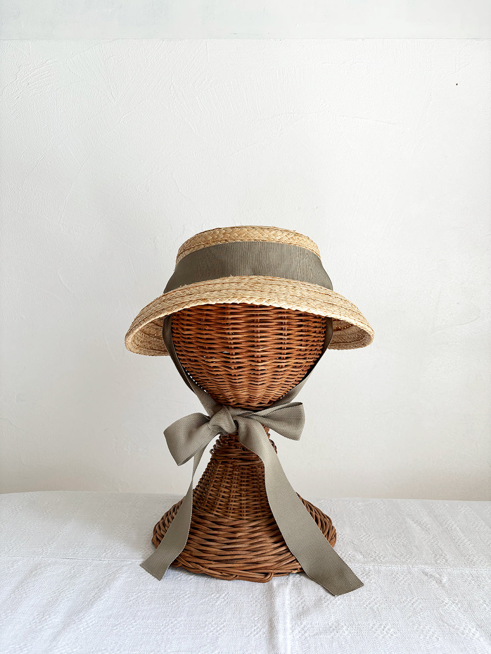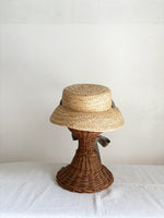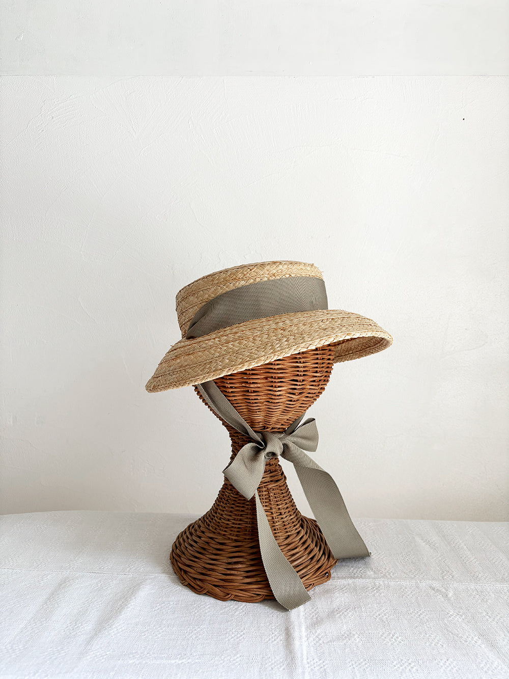 特別感のあるフォルム、垂れ下がった可愛いリボン、存在感のある印象の帽子です。頭に乗せるようにかぶるのでストレスなく長時間被っていただけます。日常的にもお出かけにも、いろいろなシーンで可愛い雰囲気に。柔らかいラフィア素材なので優しい印象に。リボンは後ろや前で結んだり、垂らしたりとアレンジを楽しんでみてください。付属の黒ゴムを後頭部に回して止めると帽子が安定し風に飛ばされにくくなります。リボンの色がグリーンベージュです。【サイズ】 free 【素材】 ラフィア